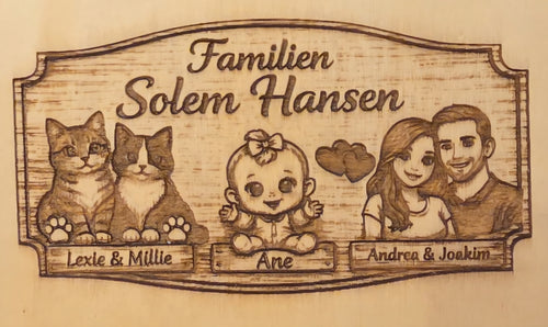 Eksklusivt Familiedørskilt – Skreddersydd Lasergravering med Navn, Barn & Kjæledyr